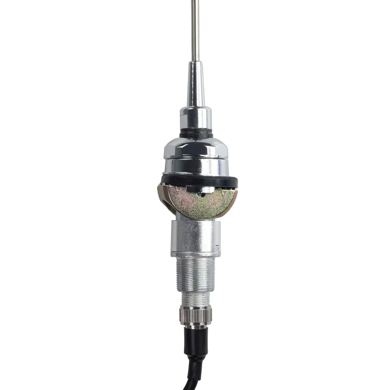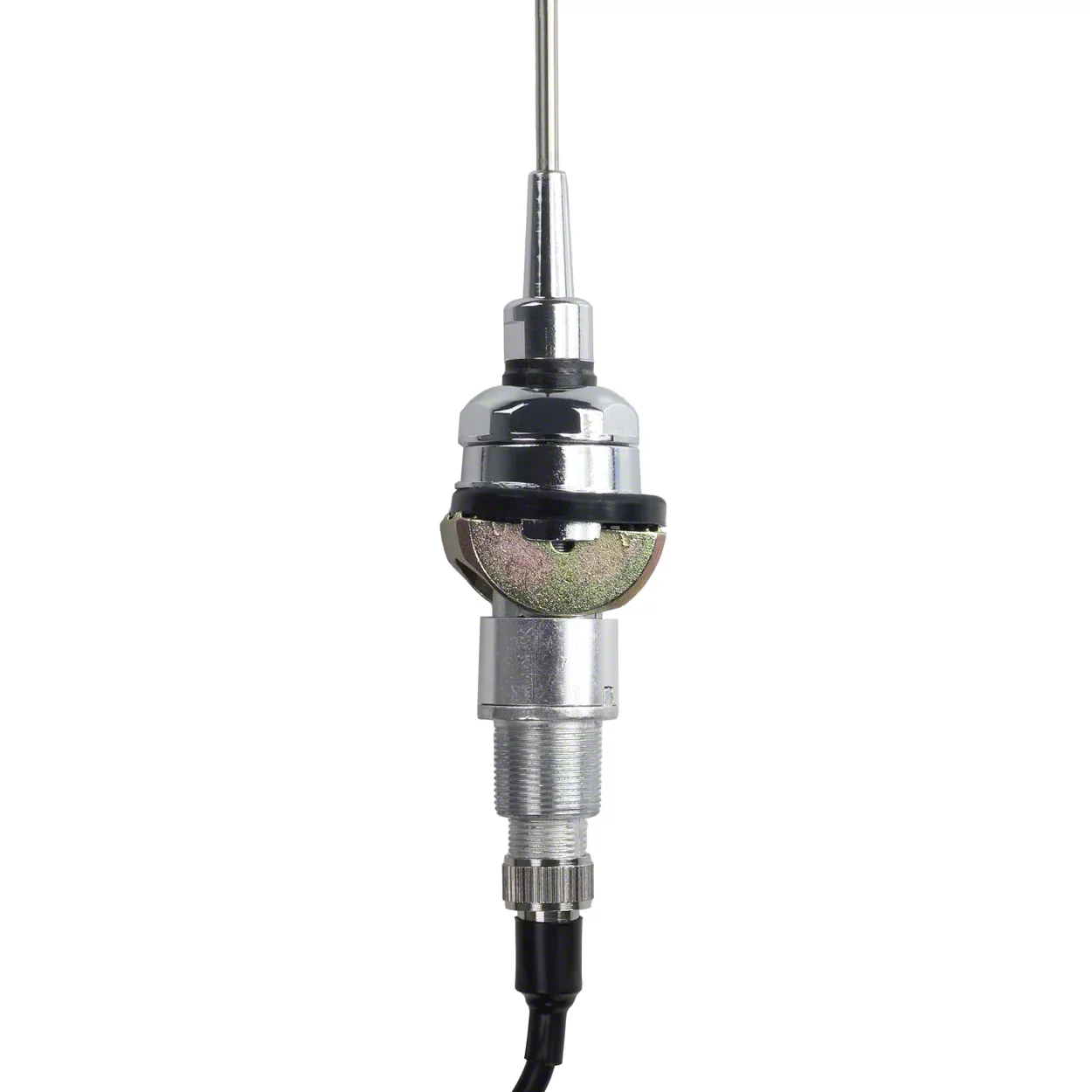 Construction and Appearance. Featuring a chrome-plated brass mast, this antenna is corrosion- and rust-resistant, ensuring durability in harsh weather conditions. With metal mounting parts and an OE-gauge construction, it meets industry standards and adds a polished look to your vehicle.