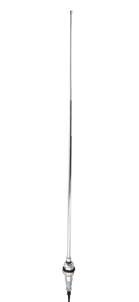 Construction and Appearance. Featuring a durable semi-collapsible mast and polished chrome finish, this antenna offers both practicality and style. Its robust construction ensures longevity, while the classic design complements the timeless look of your Corvette C3. The included antenna cable ensures a seamless connection for enhanced audio clarity.