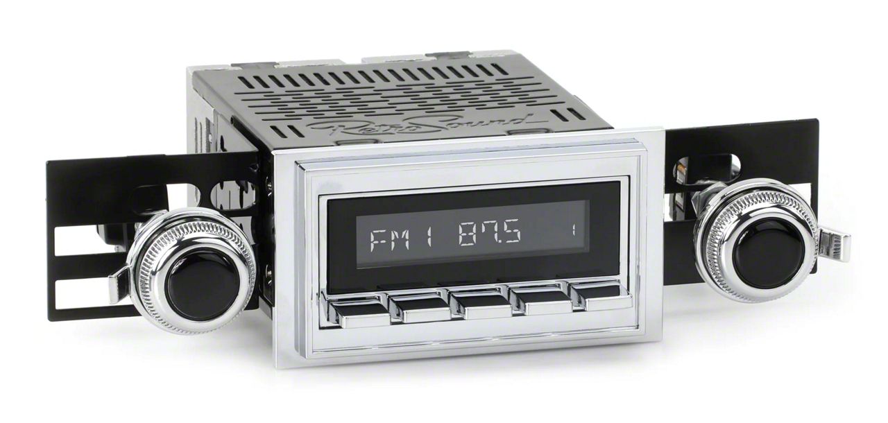 For a factory-like fit, RetroRadio includes RetroSound’s patented InfiniMount™ Brackets that can be adjusted during installation to achieve the proper width and depth of control shafts and a flush fitment of the Radio Face.