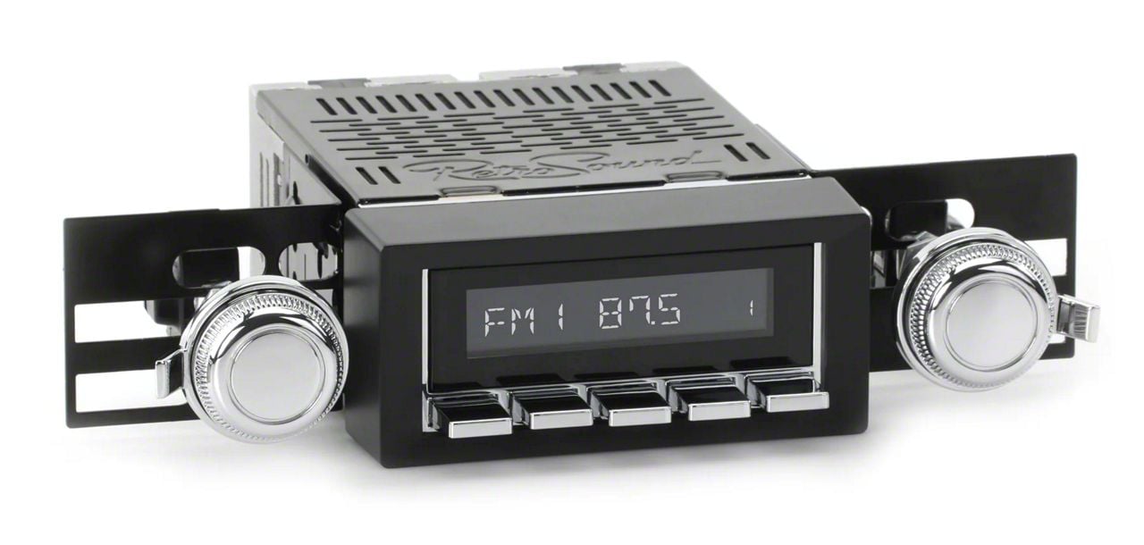 For a factory-like fit, RetroRadio includes RetroSound’s patented InfiniMount™ Brackets that can be adjusted during installation to achieve the proper width and depth of control shafts and a flush fitment of the Radio Face.