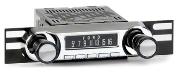 The RetroSound® Huntington is a direct-fit replacement radio for your classic 1966-77 Ford Bronco or 1961-66 Ford Truck. Huntington looks and fits like the original Ford factory radio, but boasts the most modern technological features. Bluetooth® connectivity is built in, for hands-free phone calls and wireless audio streaming. Huntington features a 32,000 color display to match the interior and dash lighting of your Ford F-Series Pickup. The Huntington includes a rear-mounted USB port for flash drives plus two standard auxiliary inputs. The Huntington has a built-in 25 watts x 4 channel power amplifier as well as front and rear RCA pre-outs, that allow the ability to add external amplifiers.