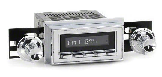 Construction and Appearance. Constructed with precision, the radio features metal knobs and a polished chrome bezel and faceplate to match the period-correct styling of classic vehicles. The modular design with patented adjustable mounting brackets ensures a snug and flush fit within your vehicle’s dash, maintaining the original aesthetic with durable components.