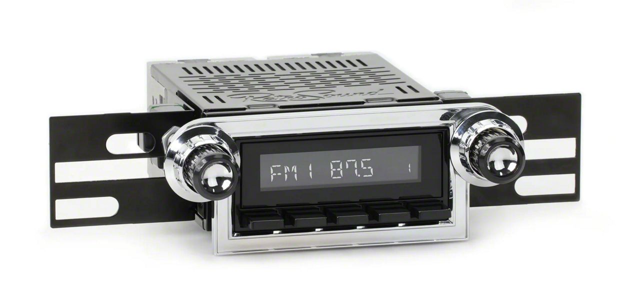 For a factory-like fit, RetroRadio includes RetroSound’s patented InfiniMount™ Brackets that can be adjusted during installation to achieve the proper width and depth of control shafts and a flush fitment of the Radio Face.