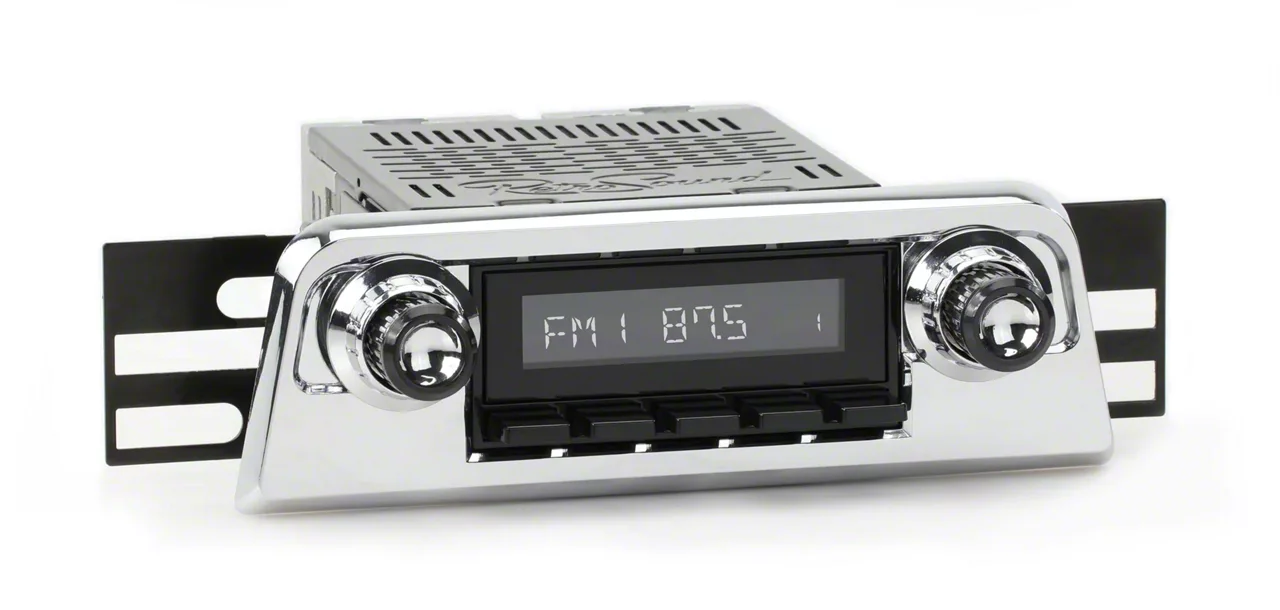 For a factory-like fit, RetroRadio includes RetroSound’s patented InfiniMount™ Brackets that can be adjusted during installation to achieve the proper width and depth of control shafts and a flush fitment of the Radio Face.
