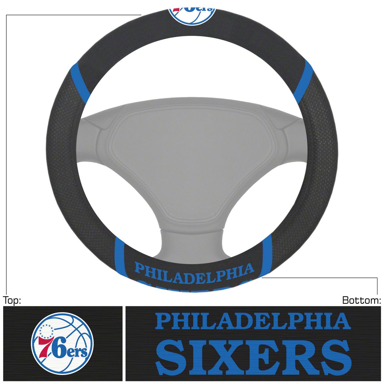 Steering Wheel Cover with Philadelphia 76ers Logo; Black (Universal; Some Adaptation May Be Required)