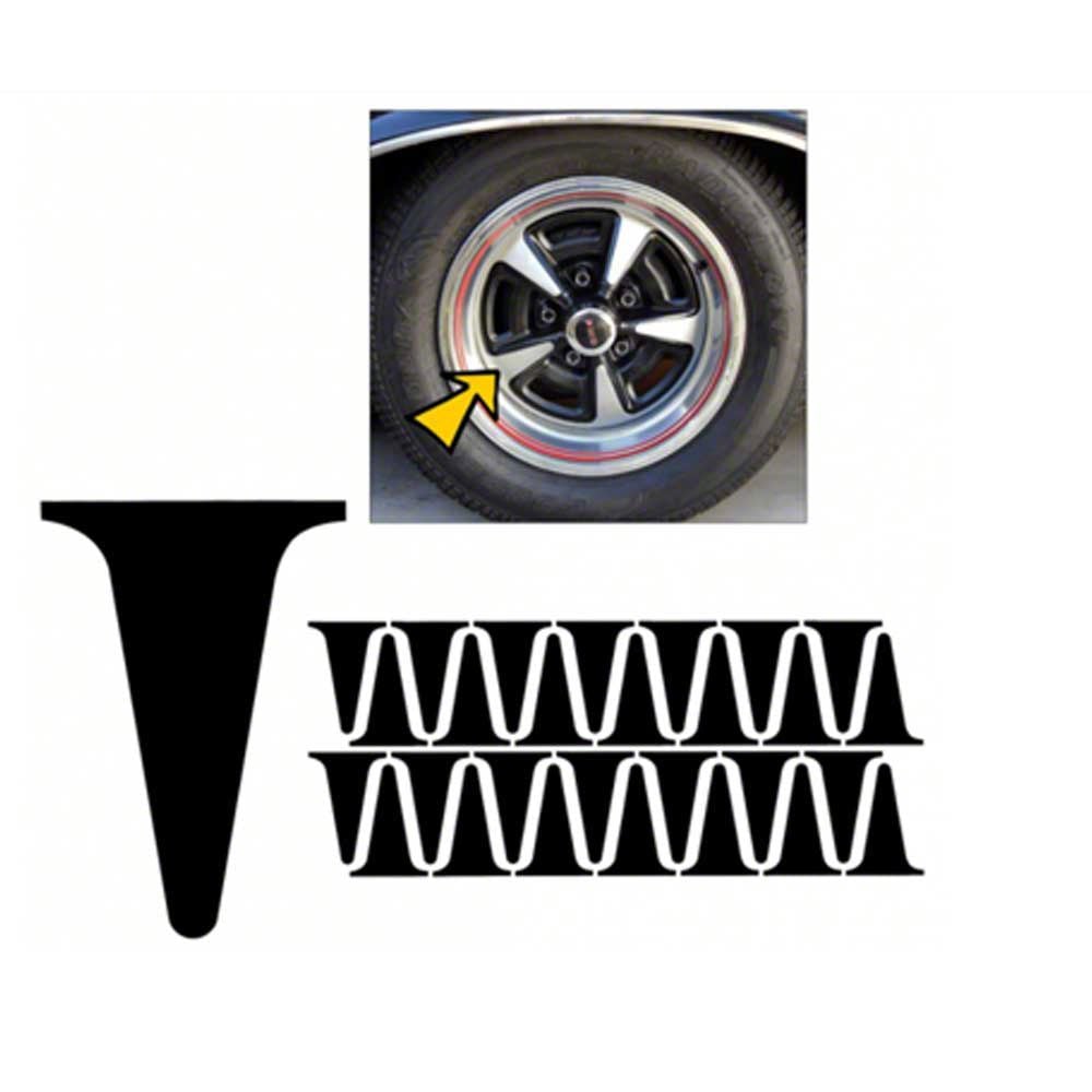 Painting your Rally II wheels is easier than ever with this wheel stencil kit from Rick’s Camaros. Simply sandblast and paint wheel then apply stencil pieces to paint black areas. Remove the stencils when dry. The 26 piece set is enough to mask 5 wheels for refinishing. Make Rick’s Camaros your one stop shop for all your Camaro parts and accessories.