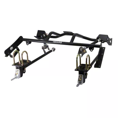 The Ridetech Air Suspension System for the 1967-1970 Mustang is the perfect system to provide modern ride quality and handling while providing that ultra low show stance. The package contains front upper and lower control arms, front MuscleBar, a Bolt-In 4 Link System and 4 HQ Series Shockaves for every corner of your vehicle. The benefit of buying a complete suspension system is that it takes all of the guesswork out when purchasing a new suspension. Ridetech has spent hours collecting data to find a perfect spring rate and components for your vehicle’s performance and ride quality.
