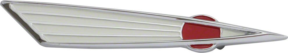 Now available and previously very hard to find ! New roofside emblems for your 1961 Mercury Comet. Features chrome triangular emblem with white paint and a red ball as original. Comes packaged as each, requires 2 per car. Mounting hardware is included. Fits hardtops and sedans, but not wagons.