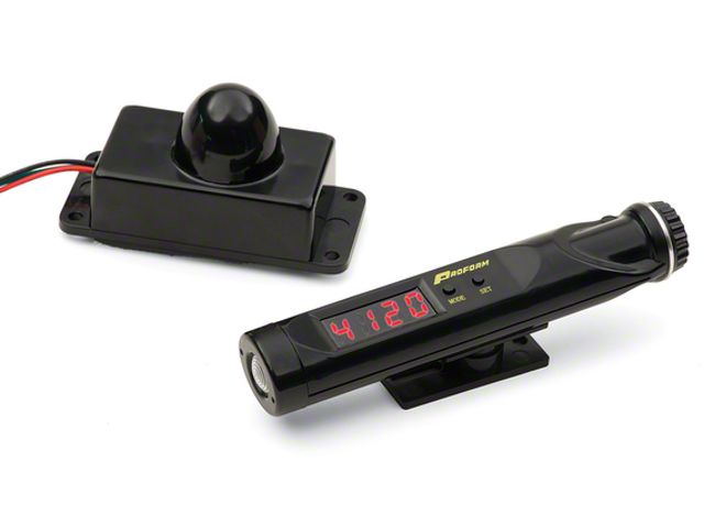 Wireless Mini Digital RPM Shift Light; Stand Alone; 100 to 12,000 RPM Range; 100 RPM Increments; 1-12 cylinder range; Tachometer Display; 3 LED Bulb Light; Detachable Mount; 3/4n Diameter; 4" Long; 1in Tall; Black Body; Sold Each