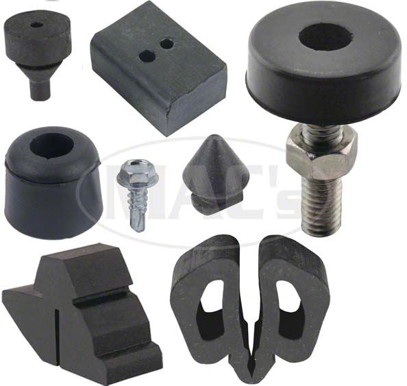 We now offer a complete rubber bumper kit. These kits include all the rubber bumpers available for your car in our catalog. Most rubber bumper kits include the correct quantity required of glove box door bumpers, radiator support bumpers, door bumpers and hood bumpers, ashtray and gas tank door bumpers. For Rancheros, we include the rubber tailgate bumpers. Buy the kit and save from the regular individual prices.