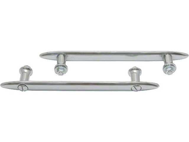 Mount on the sides of the rumble seat opening, the top rests on these when folded down, with bolts & nuts. Will also work on Coupes when equipped with a rumble seat.