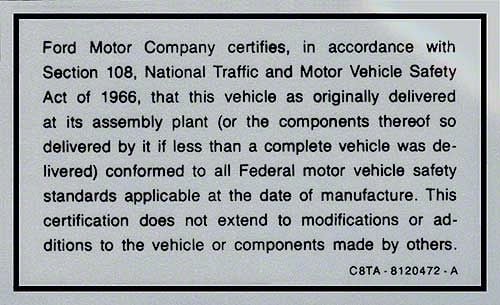 Safety Act Decal (68-69 F-100; 68-69 F-250; 68-69 F-350)