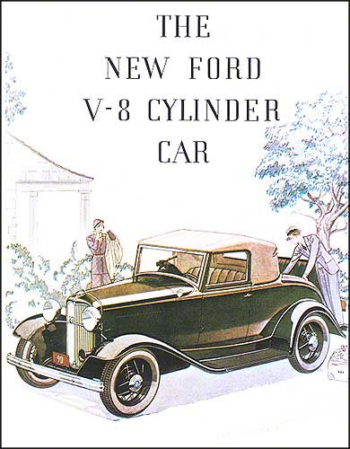 This is a reprint of an original dealer sales brochure that folds out into a full-color 17" X 22" poster and illustrates all 1932 Ford Passenger car body styles.