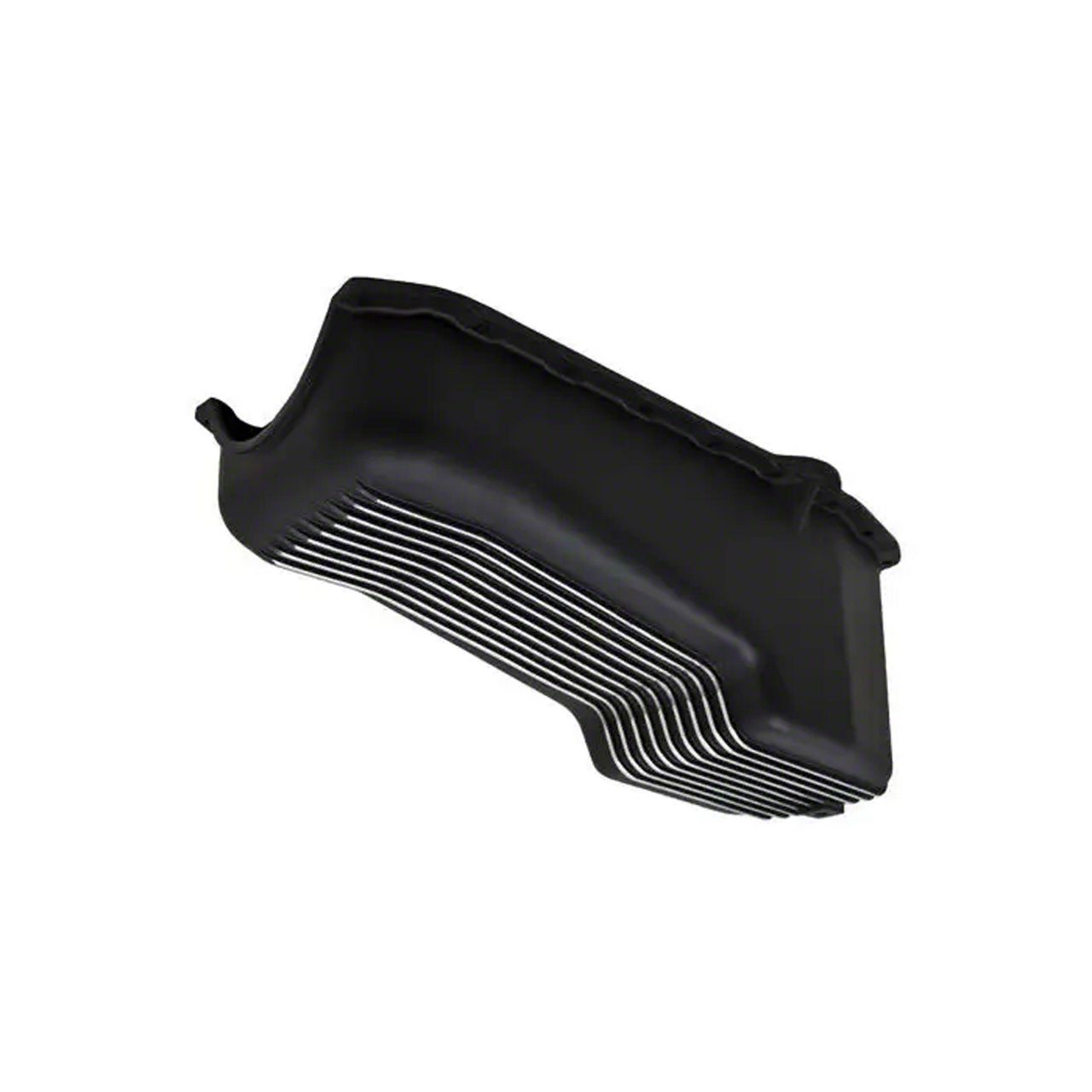Eckler's no longer carries the SB Black Aluminum Stock Capactiy Oil Pan - Retro Fin. Please check out Early Chevy Enginefor an updated selection.