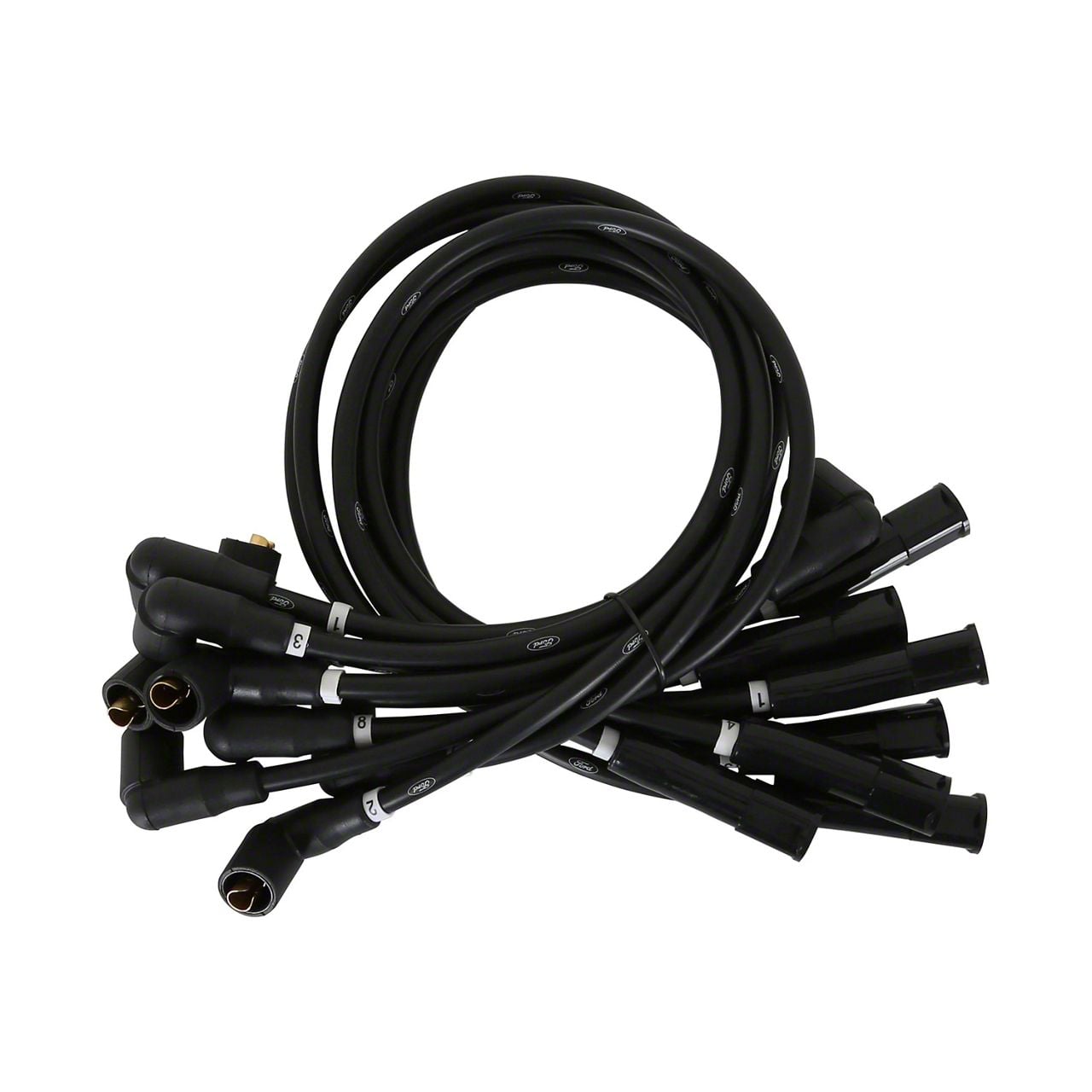 These black 8mm spark plug wires are high-performance ignition wires that are made from high-quality materials for an amazing overall product. These materials include a nickel-chromium spiral-wound inner core, silicone boots and outer jacket, brass distributor terminals, and stainless steel spark plug terminals. These Ford licensed wires feature a printed repeating Ford logo on each wire as well as correct cylinder numbering.