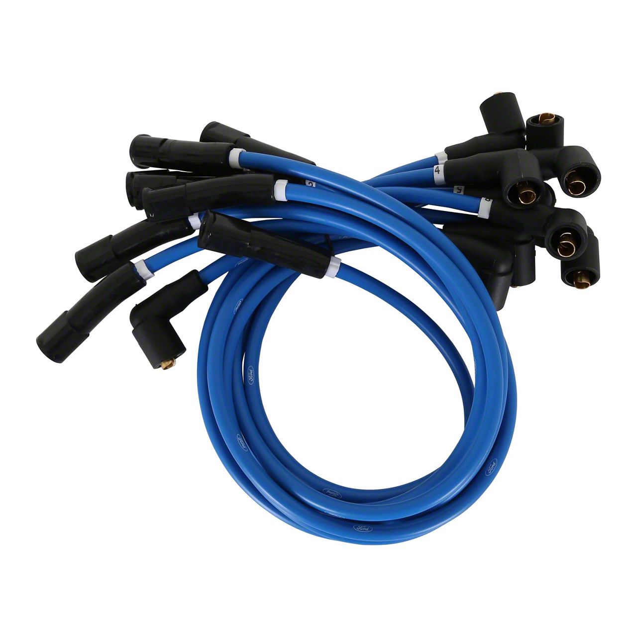 These blue 8mm spark plug wires are high-performance ignition wires that are made from high-quality materials for an amazing overall product. These materials include a nickel-chromium spiral-wound inner core, silicone boots and outer jacket, brass distributor terminals, and stainless steel spark plug terminals. These Ford licensed wires feature a printed repeating Ford logo on each wire as well as correct cylinder numbering.