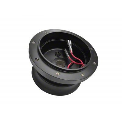 Carved from solid billet T6061-T6 aircraft aluminum and powder coated black, this Corso Feroce 1965-67 Mustang 9 hole adjustable steering column adapter is required to mount Scott Drakes Corso Feroce 9 hole steering wheels. Includes double connector horn button wiring. Also fits 68-73 Cougar, 68-70 Falcon, 68-69 Fairlane, 68-70 Comet, 68-72 Torino.