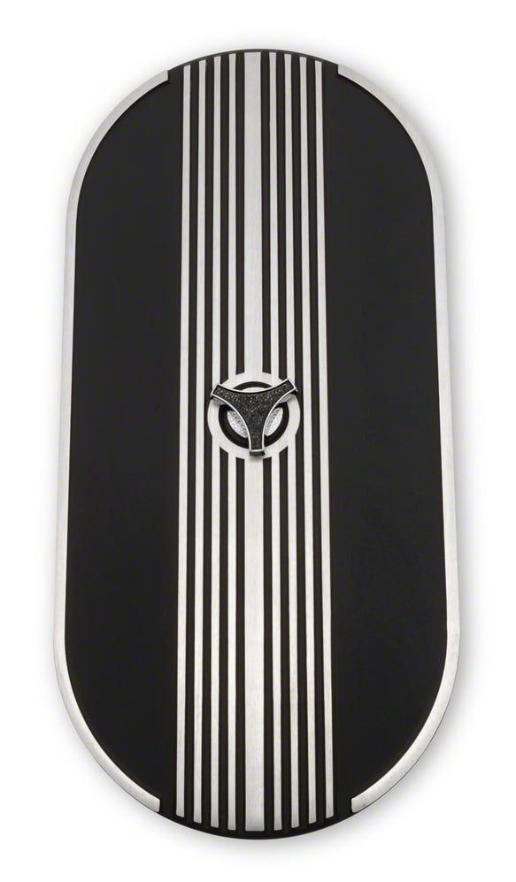 This high-quality, Concours reproduction air cleaner assembly includes a bottom single-carburetor plate, an air filter element, a carburetor stud, deluxe wing nut, and a carburetor spacer collar. Inspired by the 1960s Shelby Cobra design, this air cleaner comes in a vintage, oval shape and the sanded lines on the top edges emulates the original assemblies. This version of the cleaner comes without a logo, sporting an aluminum top and painted black. The measurements are 21 inches in length, 9-3/4 inches in width, and 2-1/16 inches in height. This direct-fit replacement air cleaner easily installs into the engine bay area of 1965-1973 Mustangs with a 2-barrel or 4-barrel carburetor. Simply remove your old, stock air cleaner and replace it with this brand-new Scott Drake version. Trimming may be required on the carburetor space collar.