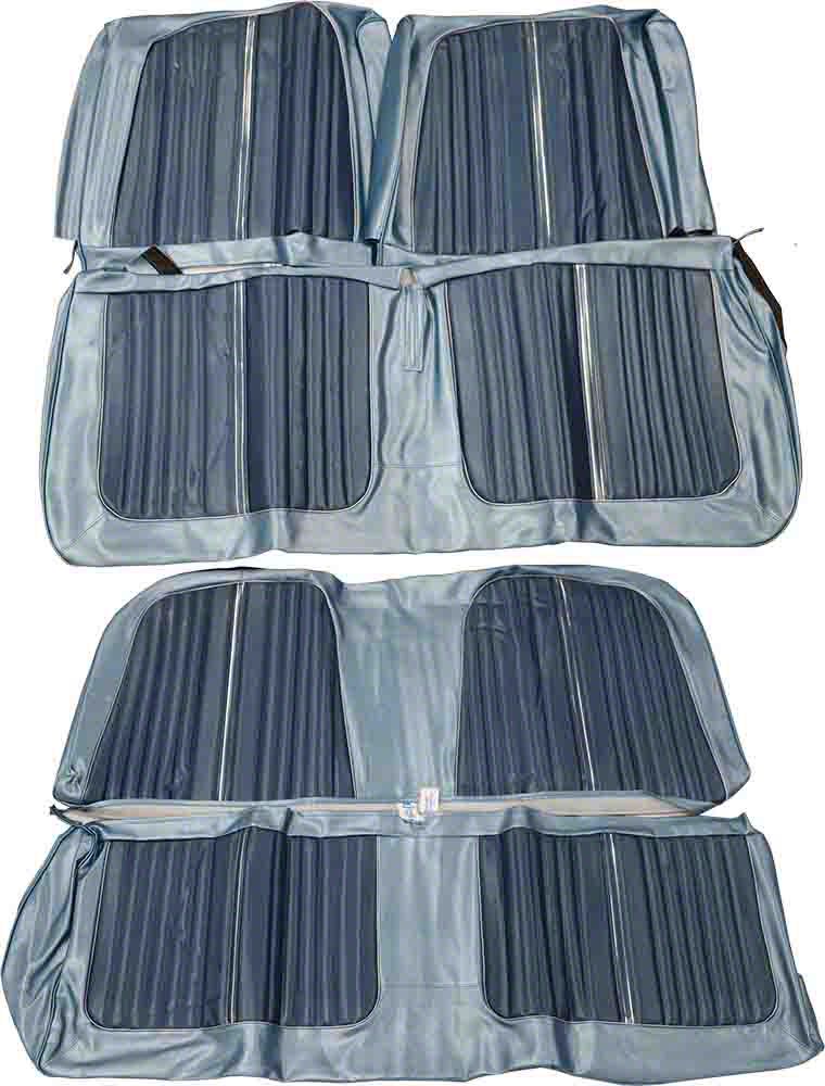 This is brand new exact reproduction seat upholstery for your 1964 Galaxie 500 2-door sedan. It is an excellent reproduction of the original Ford seat cover. These feature the correct original style patterns and construction. Any original emblems or trim will need to be reused from your original seat. Professional installation is recommended. If you decide to do the installation yourself be prepared to pad out the cushions. Original covers shrink and crush the padding. Simply putting new covers over original padding, even if it is in amazing condition, usually results in a baggy appearance.