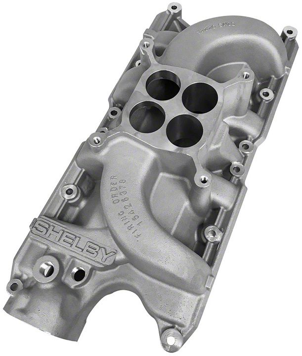 This lightweight aluminum high performance intake manifold is an exact copy if the manifold Carrol Shelby offered on his Shelbys and Cobras in the mid 1960s as well as being sold over the counter for several years. Great way to improve performance and keep authentic period-correct appearance. Fits 260, 289 and 302 engines.