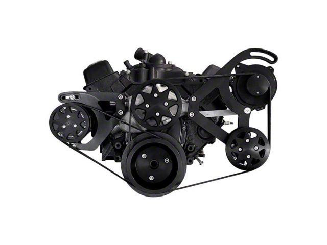 Note: This version includes accessories and is available with a 105 or a 160 amp alternator. These its include all of the above items plus the following: 105 amp GM 6.6’’ diameter alternator with 6 o’clock and 12 o’clock mounting (160 amp upgrade is available), Sanden Style Peanut AC Compressor (includes manifold and AC fittings),, GM Type II power steering pump with remote power steering reservoir, and short water pump.