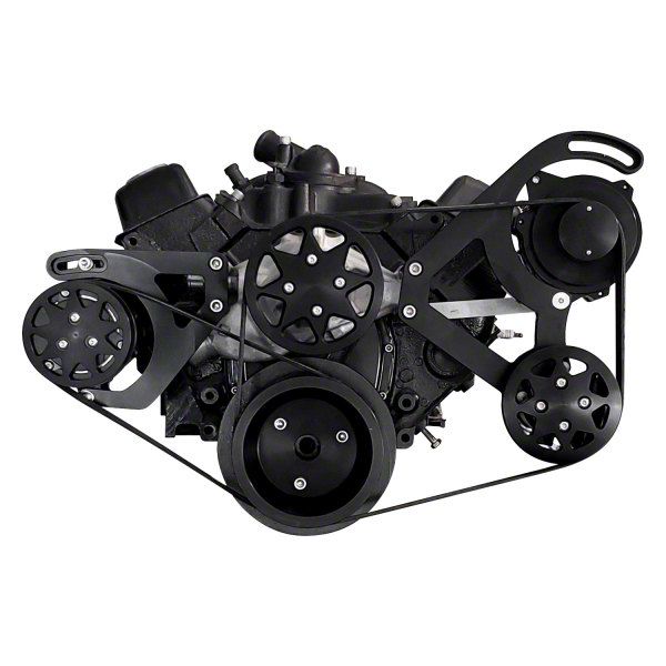 Note: This version does NOT include the Accessories. - We do offer a version with all accessories as well. All American Billet Serpentine Conversion Kits are a great way to upgrade your front drive accessories and clean up your engine. Our kits convert V-belt pulleys to the modern 6-rib serpentine belts. They mount through the water pump for easy installation and are easily adjusted. Kits are designed for the short wat