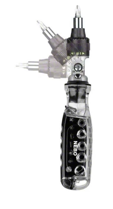 The 14-in-1 Ultra™ Socket comes with 7 screwdriver bits and 5 sockets conveniently stored inside the handle. The head of the Ultra™ Socket tilts and locks at 0°, 45°, and 90°, working perfectly as a nut driver for those hard to reach places. The handle is ergonomically designed to add comfort and grip to improve performance. The Ultra™ Socket features a reversible ratchet mechanism making it easier to loosen or tighten any bolt. The 14-in-1 Ultra™ Socket meets and exceeds ANSI standards and is created to withstand more than the normal wear and tear.