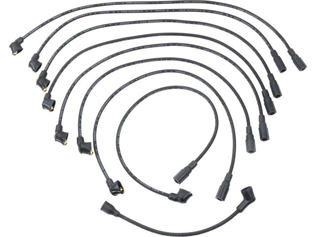Plug wire sets are reproduced using components from original equipment suppliers, Prestolite Wire and Essex Corporation. All wires are ink-stamped with the correct part numbers, exactly as original. The boots have all the correct logos and parting lines as original. Correct sleeving is placed on the wire sets as applicable.