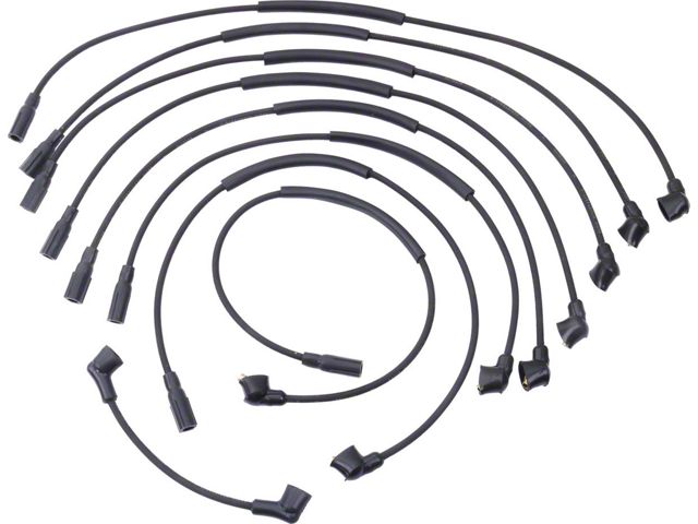 Plug wire sets are reproduced using components from original equipment suppliers, Prestolite Wire and Essex Corporation. All wires are ink-stamped with the correct part numbers, exactly as original. The boots have all the correct logos and parting lines as original. Correct sleeving is placed on the wire sets as applicable.