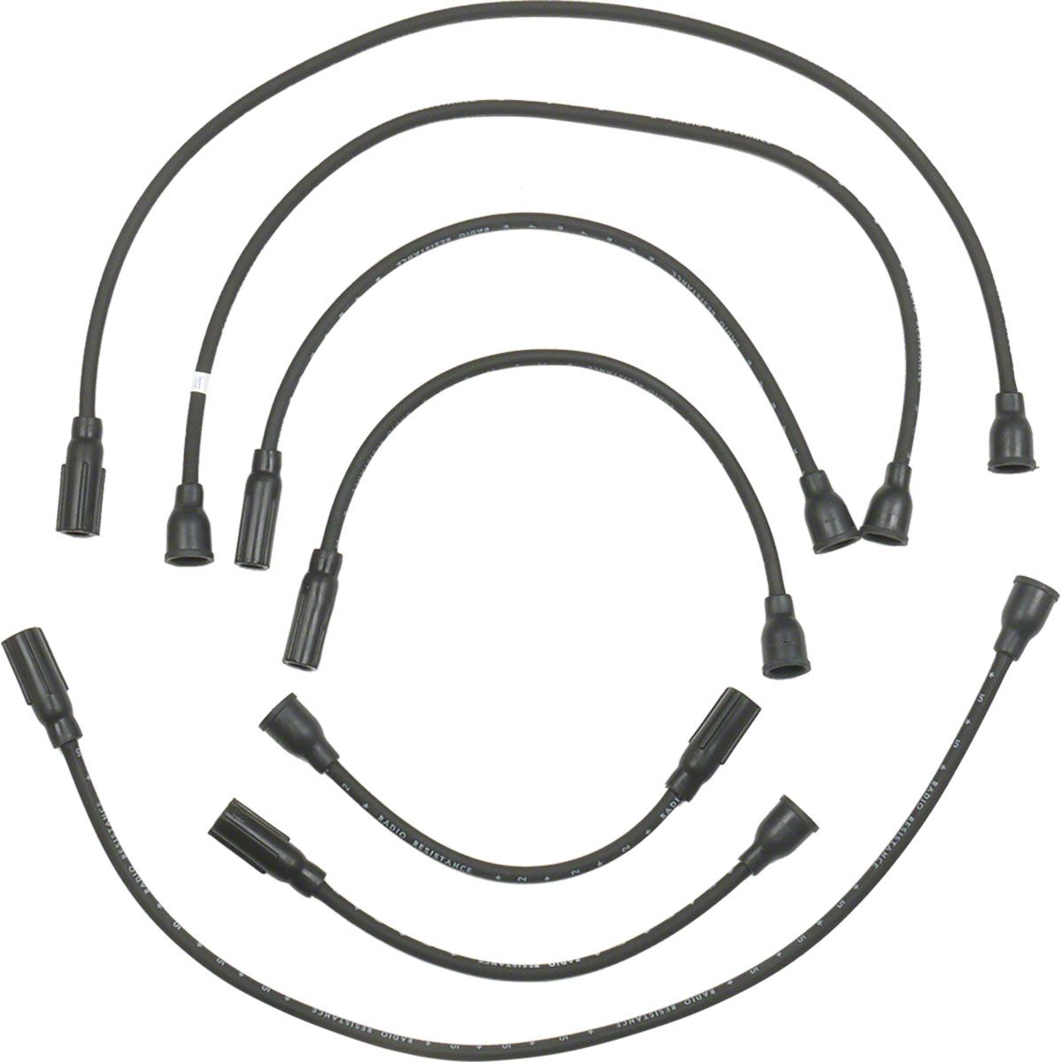 Plug wire sets are reproduced using components from original equipment suppliers, Prestolite Wire and Essex Corporation. All wires are ink-stamped with the correct part numbers, exactly as original. The boots have all the correct logos and parting lines as original. Correct sleeving is placed on the wire sets as applicable.