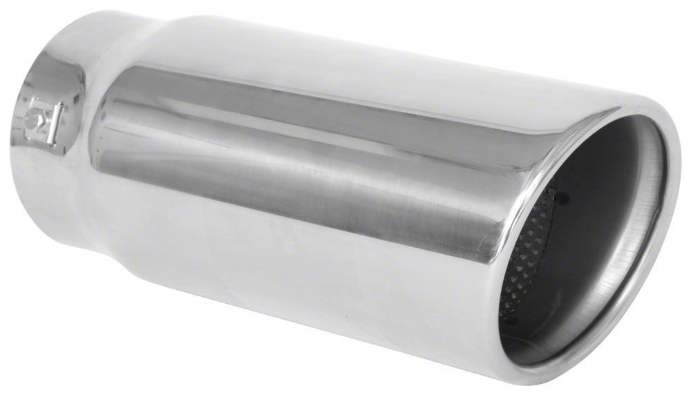 Sleek Exhaust Tip Upgrade. The Spectre Slant Cut Style Exhaust Tip (4.50-Inch, Polished) offers an impressive aesthetic upgrade with excellent resonating performance. Designed for compatibility with tailpipes ranging from 2.75 to 3.75 inches, this exhaust tip adds a polished finish and high-performance functionality to your vehicle's exhaust system.