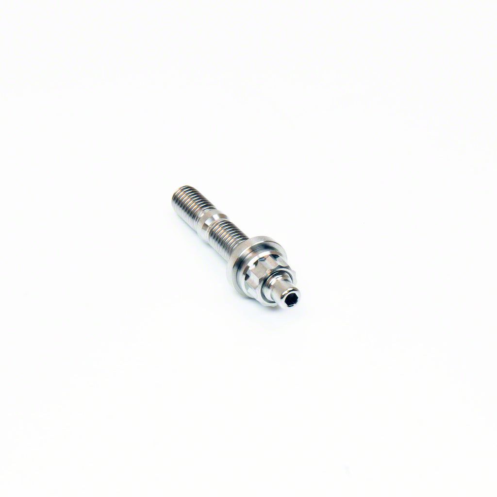 SpeedFactory Titanium studs are made of Ti 6Al-4V and incorporate a 3mm hex key tip that allows them to be easily installed using an Allen wrench. A titanium 10mm 12-point nut and washer are included.Our studs look great and will allow you to properly clamp the intake or exhaust manifold to the cylinder head without experiencing sealing problems, stud/nut failure, or ugly and troublesome rust and corrosion.Titanium is ~45% lighter, stronger, and will not corrode like your stock steel bolts or studs! Each stud/washer/nut assembly weighs only 13g!This Includes: (1) M8 x 1.25mm x 55mm Ti 6Al-4V stud, nut, and washer set.-Universal M8x1.25mm thread pitch fits many popular applications for intake and exhaust manifolds-Fits all Honda/ Acura DOHC B Series (B16, B18, B20), all D15, D16, F20B, F20C, F22C, H22, H23, and more.