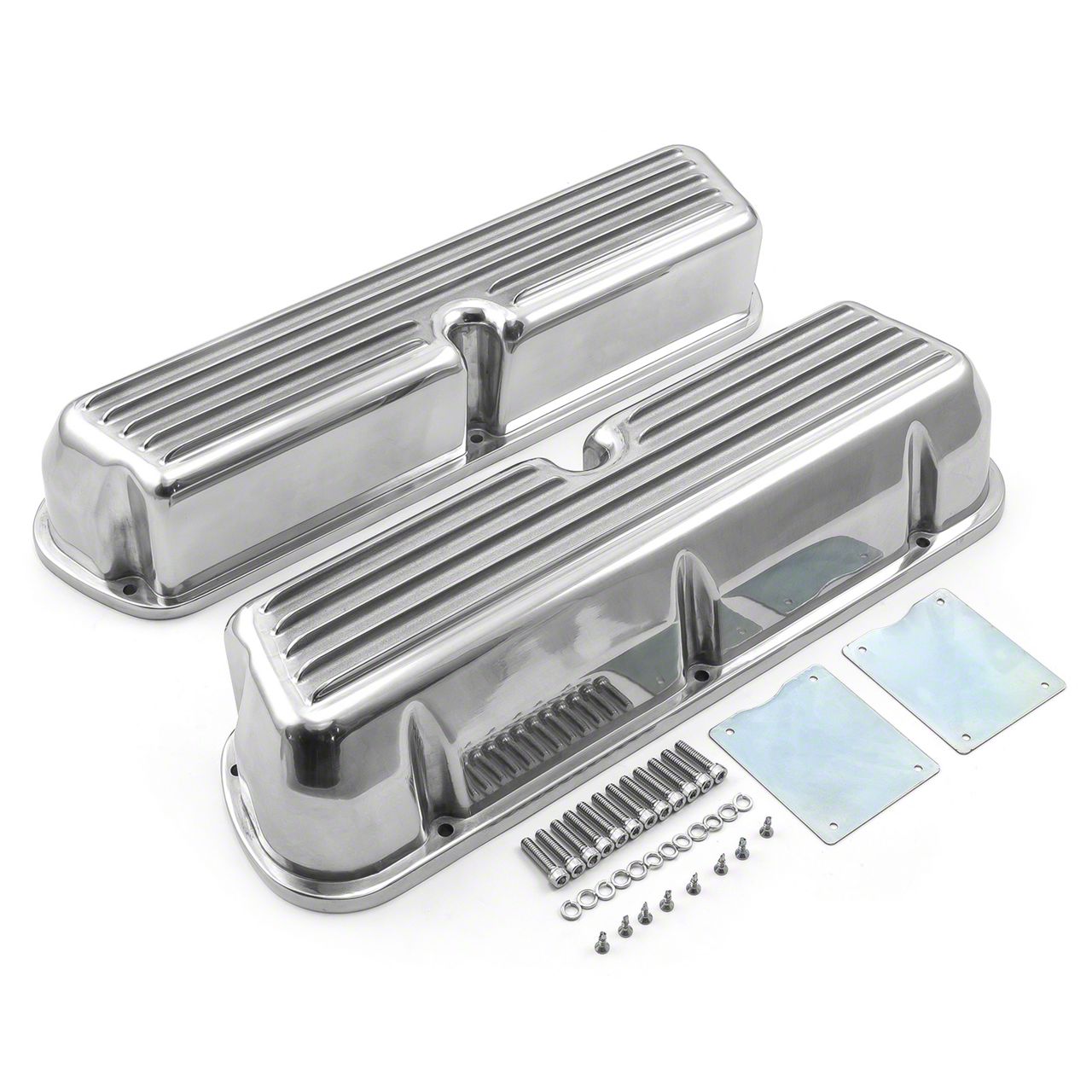 Do you want to finish off your engine in style? Try a set of these Speedmaster finned aluminum valve covers. They are manufactured from cast aluminum and have a polished finish. Speedmaster finned aluminum valve covers feature a classic raised, finned design that adds a unique look to your engine. If you don't want any breather holes drilled, no problem--they are offered with breather holes or without any holes. Speedmaster finned aluminum valve covers are the perfect fit for your engine. | Brand:Speedmaster