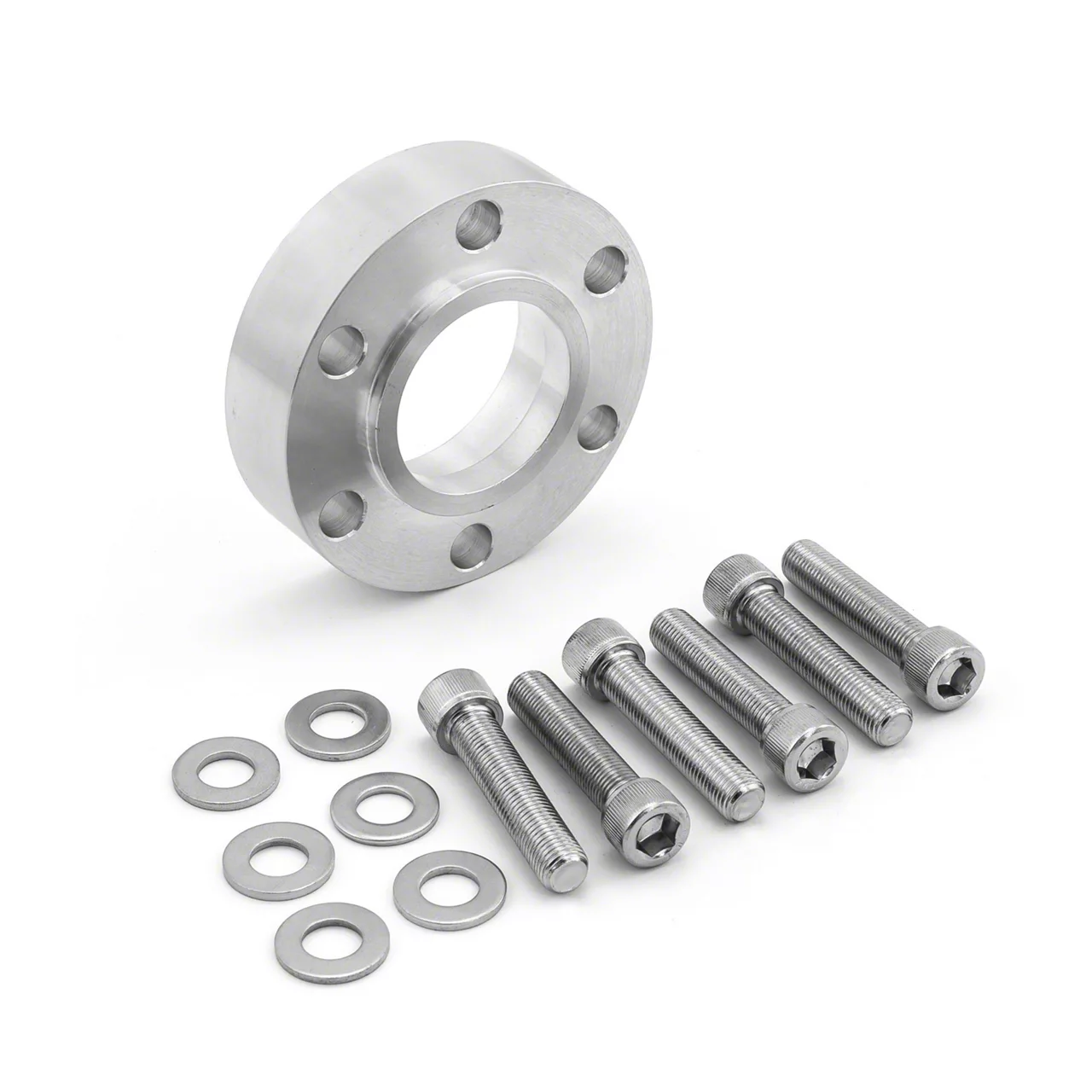 Speedmaster supercharger pulley spacers are designed to fit the Speedmaster nose drive assembly so that the belt alignment will be correct. They are made of aluminum and feature a natural finish. The spacers are available in different widths and register bore hole sizes to match your specific engine application and supercharger model. Each spacer will include their respective hardware. | Brand:Speedmaster