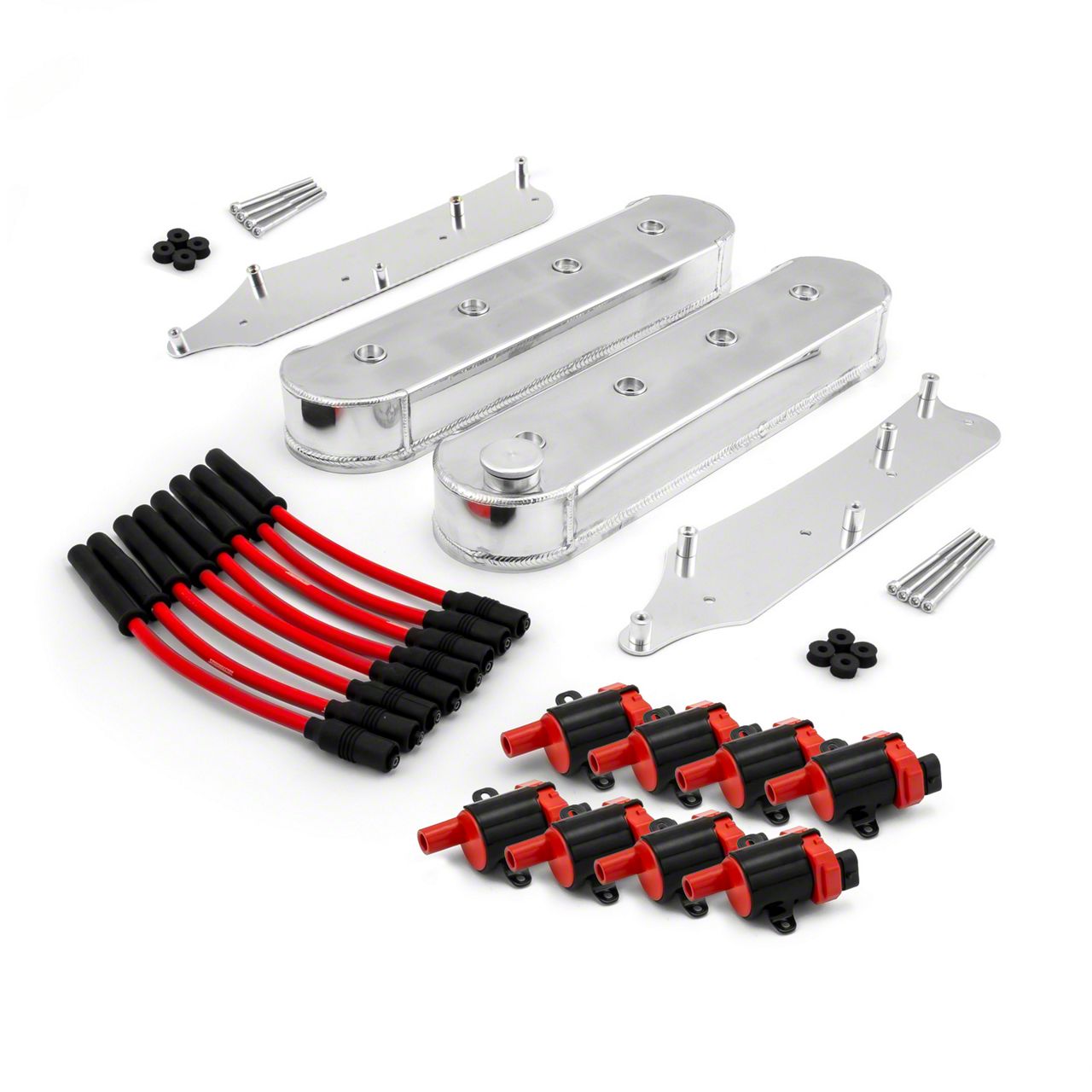 OverviewValve CoversCover your valvetrain with a set of Speedmaster fabricated aluminum valve covers. They feature lightweight construction with a thick rail for gasket support. These valve covers are TIG-welded and are manufactured to help eliminate distortion and ensure a perfect fit to help protect your valve covers and rocker arms.SpecsBrand: SpeedmasterPart Number: PCE314.1251Part Type: Valve CoverValve Cover Mounting Style: CenterboltValve Cover Height: TallValve Cover Top Style: PlainValve Cover Material: Fabricated aluminumValve Cover Finish: PolishedBaffled: NoBreathers Included: NoGaskets Included: NoGrommets Included: NoMounting Hardware Included: NoQuantity: Sold as a kit.Notes: Includes coils and wires.