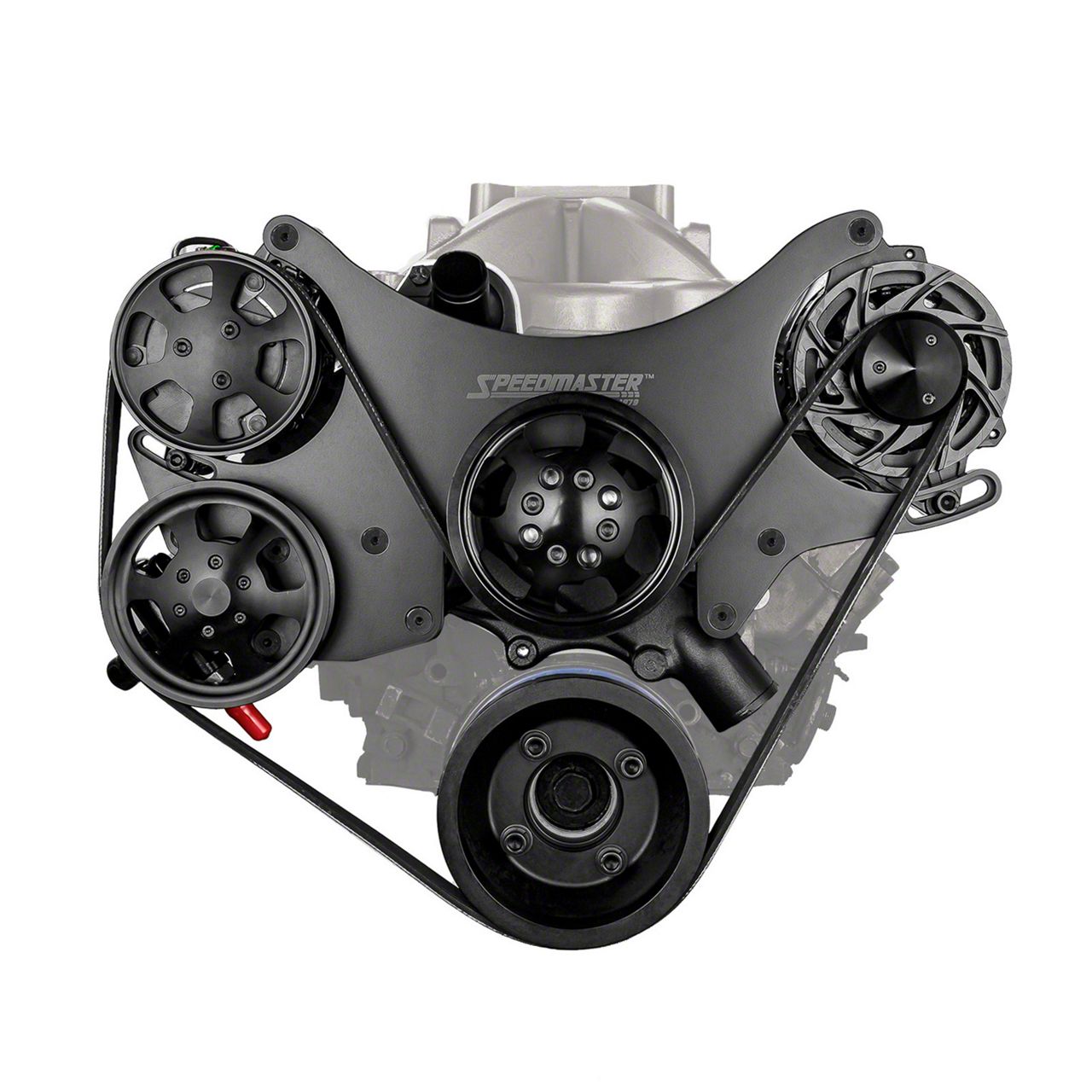 The successful formula of offering a complete engine drive accessory kit has now been applied to the Serpentine with Speedmaster pulley systems. Superior engineering, high-tech styling, and quality components are combined into a precision-machined compact package. Speedmaster pulley systems work with any type of cylinder head or manifold configuration. | Brand:Speedmaster