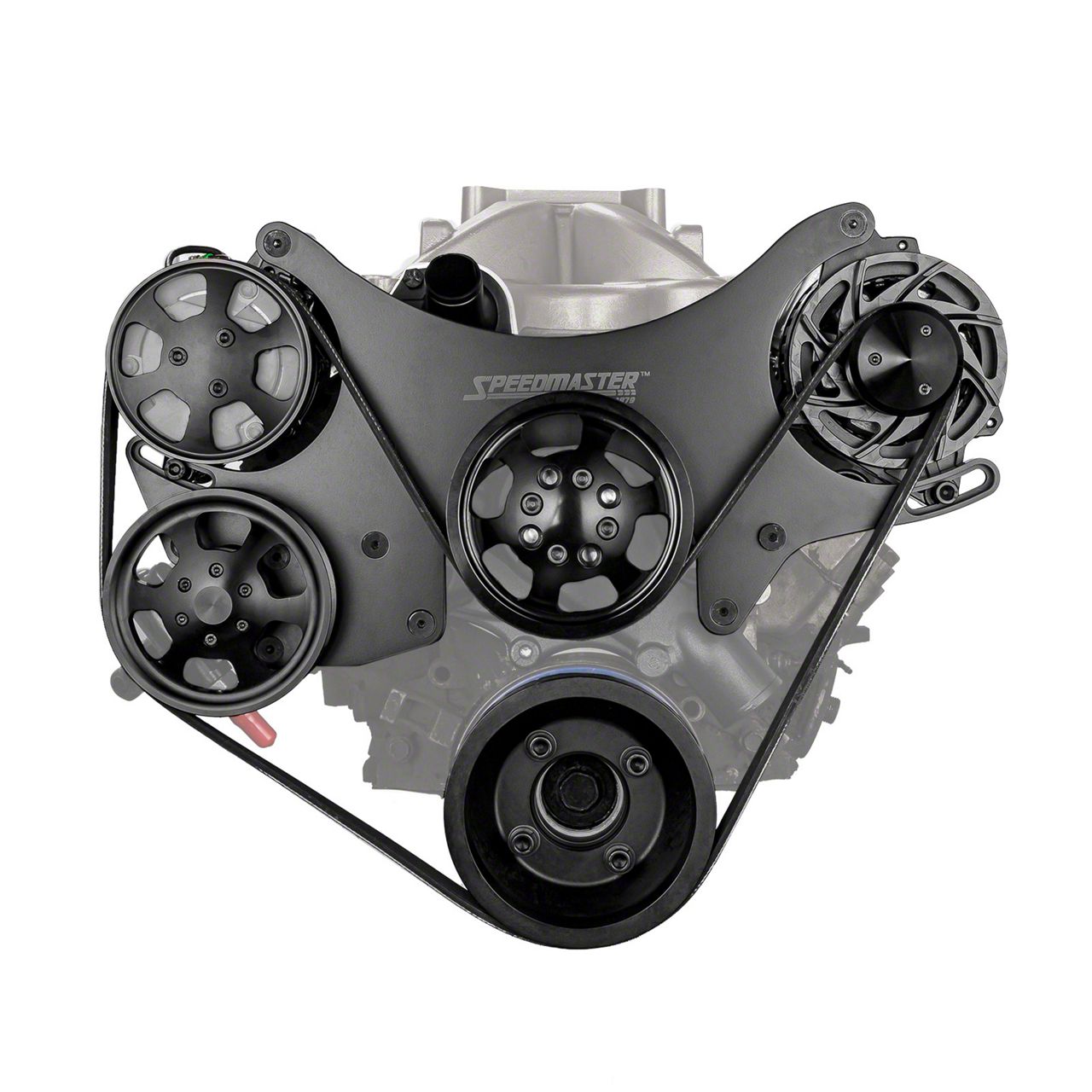 The successful formula of offering a complete engine drive accessory kit has now been applied to the Serpentine with Speedmaster pulley systems. Superior engineering, high-tech styling, and quality components are combined into a precision-machined compact package. Speedmaster pulley systems work with any type of cylinder head or manifold configuration.  | Brand:Speedmaster