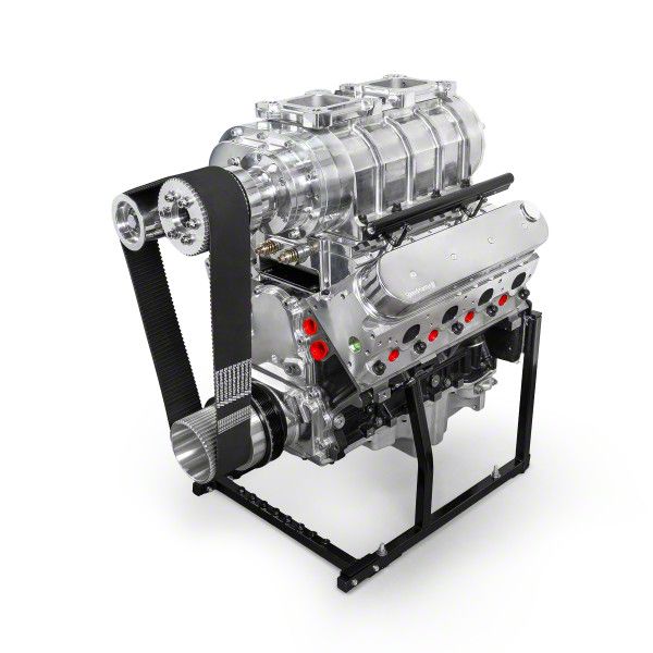 OverviewHarness four-digit horsepower potential with this LME-built, Speedmaster-equipped 402ci LS blown crate engine. Precision-machined, balanced, and blueprinted for high boost reliability, this package combines forged internals, CNC-ported heads, and a polished 6-71 supercharger for instant torque and massive power on demand.SpecsBrand: SpeedmasterPart Number: PCE284.1019Part Type: Crate EngineEngine Assembly Style: CompleteCrate Engine Cylinder Head Material: Aluminum (CNC-ported)Assembled: YesEngine Balance: InternalIntake Manifold Included: Yes (CNC-machined billet LS3 blower intake)Cylinder Heads Included: Yes (CNC-ported LS3/L92 style heads)Carburetor Included: No (requires EFI or carb setup compatible with blower)Throttle Body Included: No (blower-specific top plate)Distributor Included: n/a (coil-near-plug ignition)Oil Pan Included: Yes (LS swap wet sump pan)Valve Covers Included: Yes (polished aluminum)Timing Cover Included: Yes (polished front 2-piece with cam sensor port)Water Pump Included: Not included (requires compatible LS water pump)Harmonic Balancer Included: Yes (SFI 18.1 rated, 10% underdrive)Flexplate Included: NoFlywheel Included: NoAir Cleaner Included: NoSpark Plugs Included: YesSpark Plug Wires Included: NoComputer Included: NoWiring Harness Included: NoRear Main Seal Style: 1-pieceQuantity: Sold individually.Notes: Fully assembled 402ci LS-based crate engine built by Late Model Engines with Speedmaster performance components. Features a polished 6-71 roots-style blower, CNC-ported aluminum heads, forged rotating assembly, and premium valvetrain. Dyno-tested to 768 HP at just 7 psi on pump gas (93 octane) and capable of 1000 HP when run on methanol.DescriptionPerformance Testing & ResultsThis engine has been fully dyno-tested and documented for both pump gas and methanol configurations.Pump Gas (93 Octane) - 7 psi Boost:Horsepower: 768 HP @ 6900 RPMTorque: 629 lb-ft @ 5300 RPMChevy LS 402ci LME-built crate engine with 6-71 supercharger dyno graphDyno VideoKey Highlights 402 cubic inches from a 4.005" bore x 4.000" stroke Built by Late Model Engines (LME) - industry leader in high-performance LS builds Speedmaster 6-71 roots blower for instant boost and torque delivery Dyno-proven: 768 HP @ 7 psi on pump gas (93 octane) - 1000 HP on methanol Forged rotating assembly: 4340 steel crankshaft, I-beam connecting rods, Wiseco forged pistons with coated skirts CNC-ported aluminum heads LS3/L92 architecture with premium competition valve job High-performance valvetrain: Johnson tie-bar hydraulic roller lifters, CHE trunnion upgrade, double valve springs set for high-lift cams Custom hydraulic roller camshaft optimized for boosted street/strip use SFI 18.1-rated harmonic balancer with blower drive integration Complete long-block - ready for accessories and installationWhy Choose This Engine? Complete performance - built, tested, and ready to install Proven performance - near 800 HP on pump gas at low boost Race-proven machining - LME's proprietary processes ensure power and reliability Show-stopping looks - polished blower, billet drive, and CNC intake Massive power potential - pump gas or methanol-ready Longevity under boost - forged rotating assembly, premium bearings, and high-lift valvetrain components Boost-ready internals - supports higher boost levels for future upgradesWhat's IncludedA complete premium build from block to blower: Fully machined, balanced, and blueprinted 402ci LS Gen IV 6-bolt main block Forged crankshaft, rods, and pistons engineered for high boost CNC-ported aluminum heads matched to blower application Polished 6-71 roots-style supercharger system with billet intake LS swap wet sump oil pan Dyno break-in, performance verification, and documentation includedApplications Pro-touring builds needing instant torque and drivability Classic muscle cars upgrading to modern LS power with vintage blower style High-e