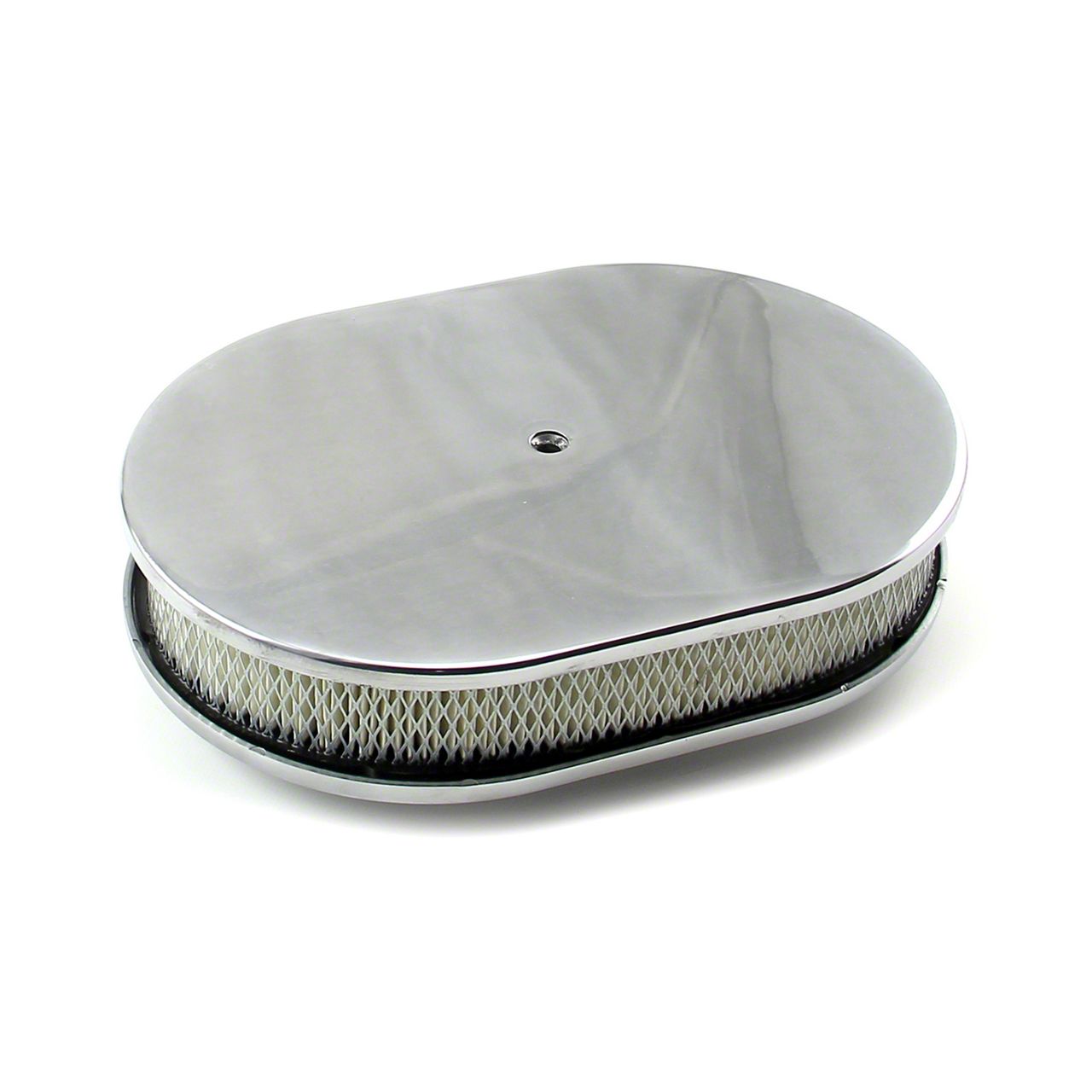 OverviewSpeedmaster's air cleaners not only look great, they also provide your engine with cleaner air for better performance. They're available in round and oval styles, and you can choose between plain polished, straight ball-milled, and flame ball-milled finishes.SpecsBrand: SpeedmasterPart Number: PCE104.1005.01Part Type: Air CleanerBase Style: RaisedAir Cleaner Shape: OvalAir Cleaner Size: 12 in. long x 8 3/8 in. wideAir Cleaner Top Design: PlainAir Cleaner Top Material: AluminumAir Cleaner Top Finish: PolishedFilter Height (in): 2.000 in.Net Height from Carb Flange (in): 3.150 in.Air Cleaner Base: Polished aluminumAir Cleaner Filter: White PaperRaised Distance (in): 0.625 in.Wing Nut Included: NoQuantity: Sold individually.