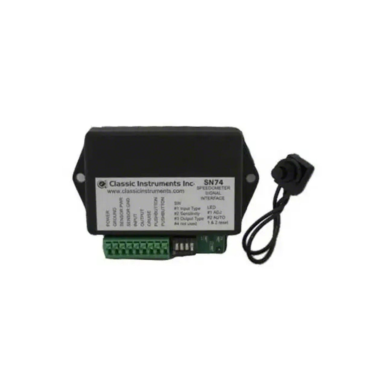 Converts any speed signal to a 16,000ppm or 8,000ppm signal. Includes an additional 8,000ppm output signal for cruise controls. Set speedometer using a pushbutton instead of rocker switches. Calibrate speedometer by marked mile method or on the fly with the real-time method. Provides a filtered +12V power source for 16 pulse generators which helps eliminate some types of interference. Pushbutton is removable. You no longer need to have a button cluttering your dash after calibrating your speedometer.