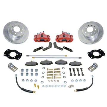 Calipers and adapters allow you to re-use your factory parking brake cable, and stainless steel shim washers align the caliper over the rotor. Kit includes DOT Flex hoses and new hard lines. All brackets are e-coated for long life rust prevention. 10.5 inch diameter vented rotors provide maximum durability. Easy to read instructions make this kit one of the best on the market!