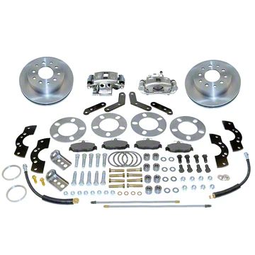 Standard Rear Disc Brake Conversion includes built-in parking brake. Fits Ford 9" Old style large bearing axles. Rotors will accept both Ford 5 x 4.5" and GM 5 x 4.75" bolt patterns.
