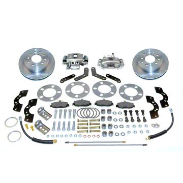 Calipers and adapters allow you to re-use your factory parking brake cable, and stainless steel shim washers align the caliper over the rotor. Kit includes DOT Flex hoses and new hard lines. All brackets are e-coated for long life rust prevention. 10.5" diameter vented rotors provide maximum durability. Easy to read instructions make this kit one of the best on the market!