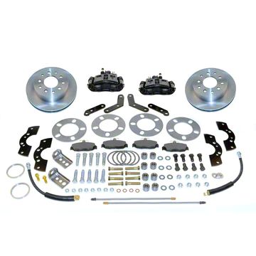 Calipers and adapters allow you to re-use your factory parking brake cable, and stainless steel shim washers align the caliper over the rotor. Kit includes DOT Flex hoses and new hard lines. All brackets are e-coated for long life rust prevention. 10.5" diameter vented rotors provide maximum durability. Easy to read instructions make this kit one of the best on the market!