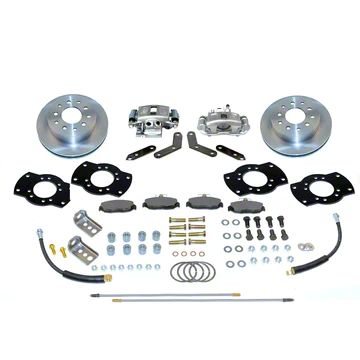 Calipers and adapters allow you to re-use your factory parking brake cable, and stainless steel shim washers align the caliper over the rotor. Kit includes DOT Flex hoses and new hard lines. All brackets are e-coated for long life rust prevention. 11.3 inch diameter vented rotors provide maximum durability. Easy to read instructions make this kit one of the best on the market!