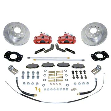 Calipers and adapters allow you to re-use your factory parking brake cable, and stainless steel shim washers align the caliper over the rotor. Kit includes DOT Flex hoses and new hard lines. All brackets are e-coated for long life rust prevention. 10.5 inch diameter vented rotors provide maximum durability. Easy to read instructions make this kit one of the best on the market!