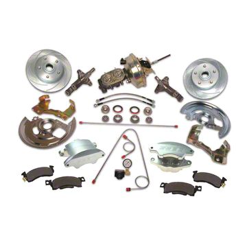 This kit contains all the parts you need to convert your ’64-’74 GM- A, F, X body front power vehicle, with automatic or manual transmission, from drum to disc brakes. Manufactured from quality materials, these front conversion kits are designed to bolt directly onto your stock axle and provide you with the performance and durability you expect from a modern brake system. Please consult the wheel fitment diagram to confirm clearances and contact our customer service/technical support at 1-716-775-6700 for assistance.