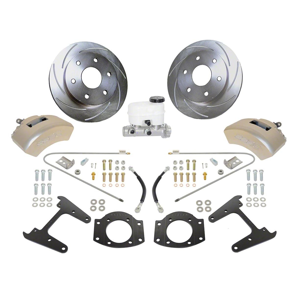 Increase your stopping power with SSBC-USA Sport R1 disc brake kits. They feature aluminum Sport R1 single piston brake calipers with built-in parking brakes. The calipers are given a clear anodized finish for added durability, but you can choose from optional red, black, or polished finishes. Also included in the Sport R1 kits are rotors, high performance brake pads, braided stainless flex lines, mounting brackets, and hardware. When you want American stopping power, convert to performance with style: SSBC-USA Sport R1 disc brake kits, available in dozens of models and options for applications from 1953 and up.