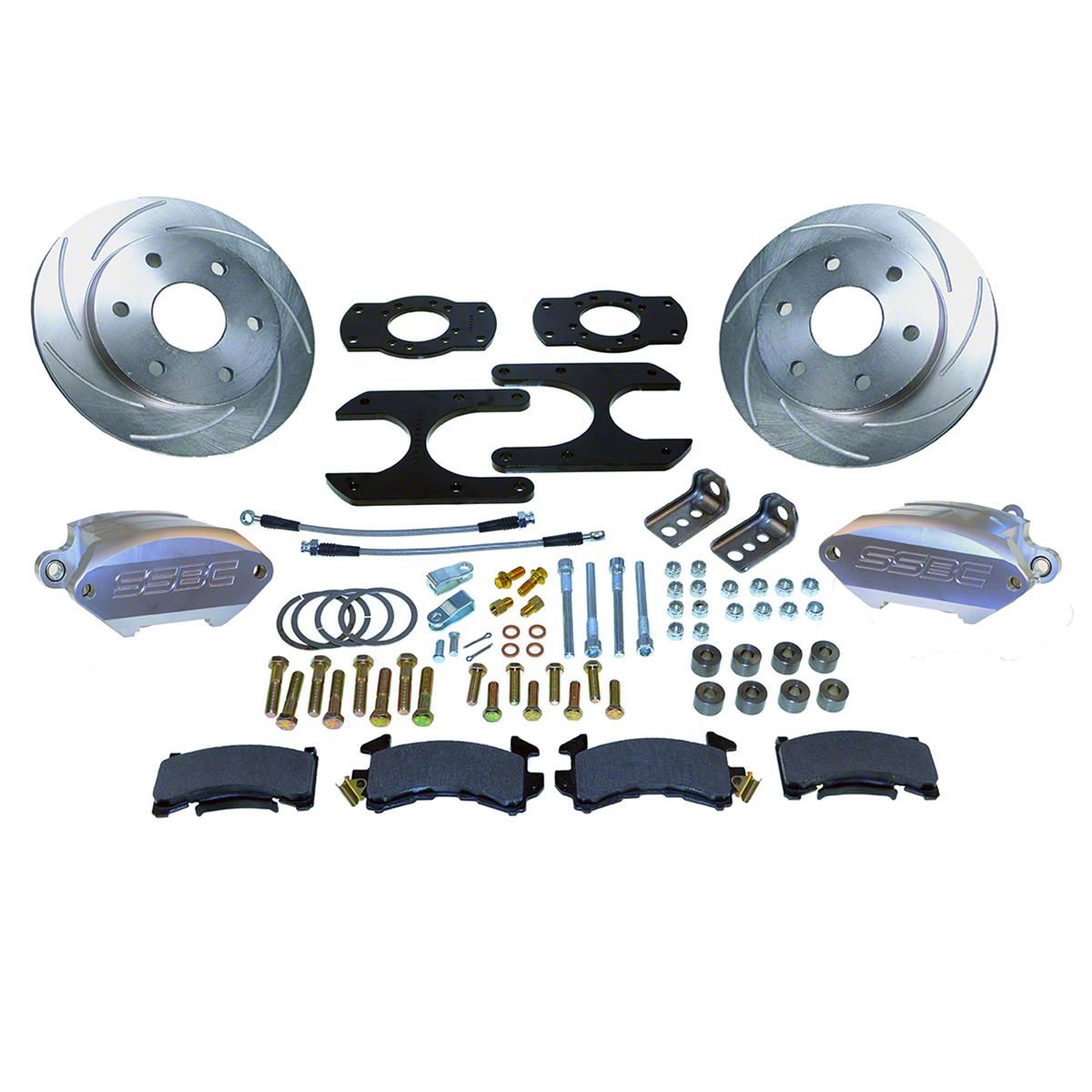 Increase your stopping power with SSBC-USA Sport R1 disc brake kits. They feature aluminum Sport R1 single piston brake calipers with built-in parking brakes. The calipers are given a clear anodized finish for added durability, but you can choose from optional red, black, or polished finishes. Also included in the Sport R1 kits are rotors, high performance brake pads, braided stainless flex lines, mounting brackets, and hardware. When you want American stopping power, convert to performance with style: SSBC-USA Sport R1 disc brake kits, available in dozens of models and options for applications from 1953 and up.