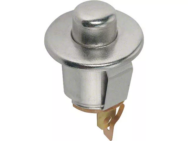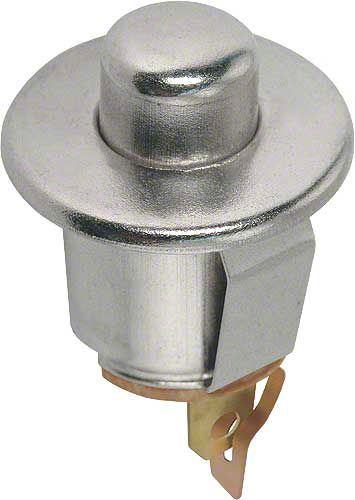 This starter button is a universal part with one-wire connection and a body-ground. It is chrome with a plain chrome bezel.